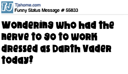 X is wondering who had the nerve to go to work dressed as Darth Vader today?