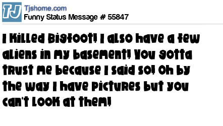 - # 210658 Sure I have my doubts, but Bigfoot doesn’t have any pictures of me either.