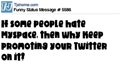 X says If some people hate Myspace, then why keep promoting your Twitter on it?