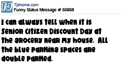 X says I can always tell when it is Senior Citizen Discount Day at the grocery near my house. All the blue parking spaces are double parked.