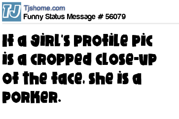 X is If a girl's profile pic is a cropped close-up of the face, she is a porker.