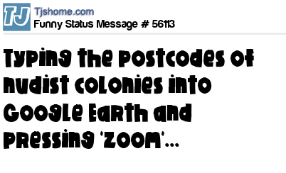 - # 5458 typing the postcodes of nudist colonies into Google Earth and pressing 'zoom'.