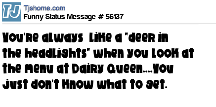 X says You're always like a "deer in the headlights" when you look at the menu at Dairy Queen....You just don't know what to get.