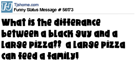 X is what is the differance between a black guy and a large pizza?? a large pizza can feed a family!