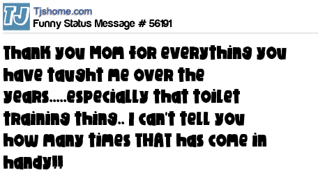 X says Thank you Mom for everything you have taught me over the years.....especially that toilet training thing.. I can't tell you how many times THAT has come in handy!!