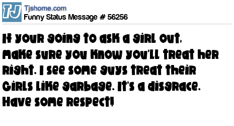 X is If your going to ask a girl out, make sure you know you'll treat her right. I see some guys treat their Girls like garbage. It's a disgrace. Have some respect!