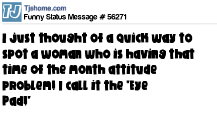 X I just thought of a quick way to spot a woman who is having that time of the month attitude problem! I call it the "Eye Pad!"