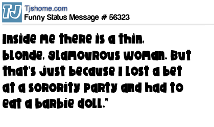 X is Inside me there is a thin, blonde, glamourous woman. But that's just because I lost a bet at a sorority party and had to eat a barbie doll."