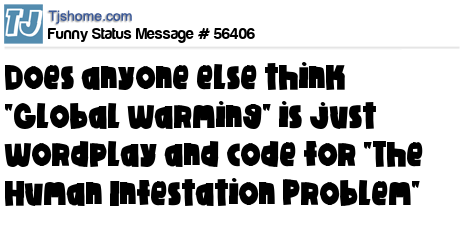 X is Does anyone else think "Global warming" is just wordplay and code for "The Human Infestation Problem"