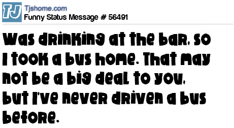 - # 50864 drinking at the bar so I took a bus home. That may not be a big deal to you... but I've never driven a bus before.