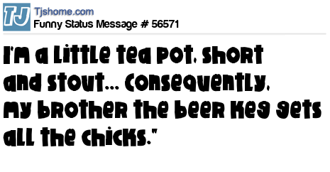 X is I'm a little tea pot, short and stout... Consequently, my brother the beer keg gets all the chicks."