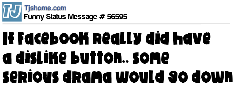 - # 76783 A dislike button on facebook would be cool at first, but it would eventually just cause a lot of controversy and drama. Especially if you could dislike peoples entire profiles. That would not go well..