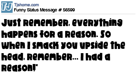 - # 18183 Things happen for a reason... so when I reach over and smack you upside the head just remember..you gave me a reason!!!