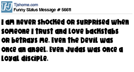 X is I am never shocked or surprised when someone I trust and love backstabs or betrays me. Even the Devil was once an angel. Even Judas was once a loyal disciple.
