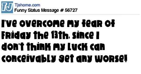 X says I've overcome my fear of Friday the 13th, since I don't think my luck can conceivably get any worse!