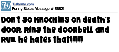 - # 37505 Never knock on Death's door. Ring the bell and run, he hates that.