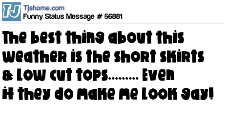 X The best thing about this weather is the short skirts & low cut tops......... Even if they do make me look gay!