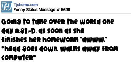 X is going to take over the world one day >=D, as soon as she finishes her homework "awww," *head goes down, walks away from computer*