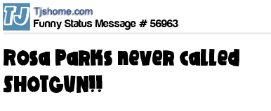 - # 75962 come to think of it...Rosa Parks never called shotgun