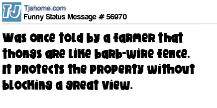 - # 18406 A dress is like a barbed wire fence. It protects the premises without obstructing the view.