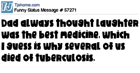 X Dad always thought laughter was the best medicine, which I guess is why several of us died of tuberculosis.