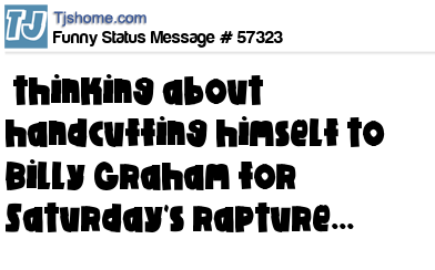 X   thinking about handcuffing himself to Billy Graham for Saturday's rapture...