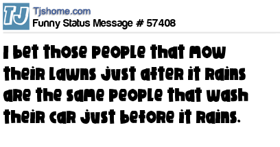 X I bet those people that mow their lawns just after it rains are the same people that wash their car just before it rains.