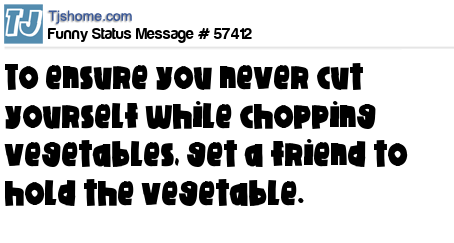 X says To ensure you never cut yourself while chopping vegetables, get a friend to hold the vegetable.