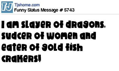 X says I am slayer of dragons, sudcer of women and eater of gold fish crakers!