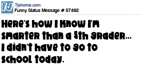 X Here's how I know I'm smarter than a 5th grader... I didn't have to go to school today.