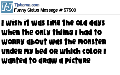 X says i wish it was like the old days when the only thiing I had to worry about was the monster under my bed or which color I wanted to draw a picture