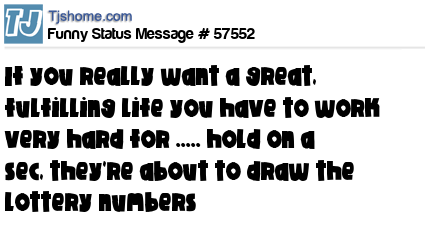 X is If you really want a great, fulfilling life you have to work very hard for ..... hold on a sec, they're about to draw the lottery numbers