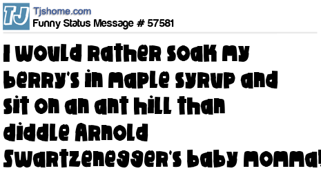 X I would rather soak my berry's in maple syrup and sit on an ant hill than diddle Arnold Swartzenegger's baby momma!