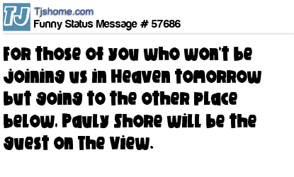 X For those of you who won't be joining us in Heaven tomorrow but going to the other place below, Pauly Shore will be the guest on The View.