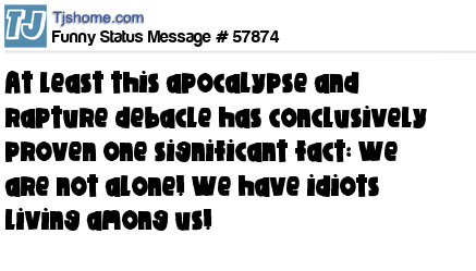 X is At least this apocalypse and rapture debacle has conclusively proven one significant fact: We are not alone! We have idiots living among us!