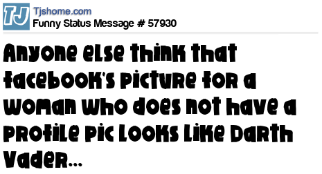 - # 52913 wondering if anyone else has noticed that the default facebook profile picture for females looks like a silhouette of darth vader