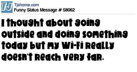 - # 58161 I thought about going outside and doing something today but my Wi-Fi really doesn't reach very far.