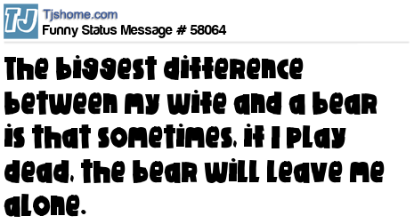 X is The biggest difference between my wife and a bear is that sometimes, if I play dead, the bear will leave me alone.