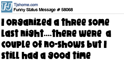 X says I organized a three some last night....there were a couple of no-shows but I still had a good time