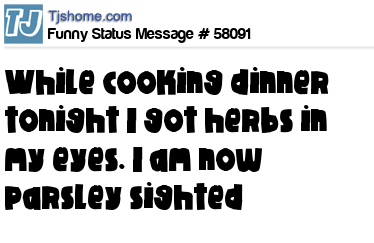 X is While cooking dinner tonight I got herbs in my eyes. I am now parsley sighted