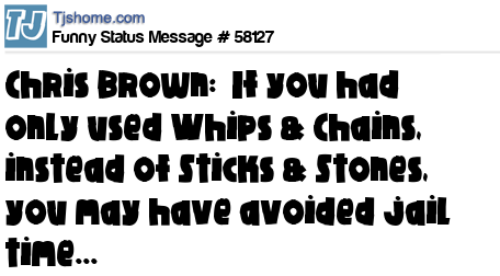 X says Chris Brown:  If you had only used Whips & Chains, instead of Sticks & Stones, you may have avoided jail time...