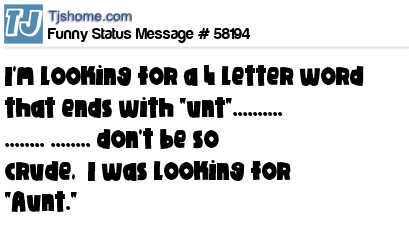 - # 27990 Hey, whats a four letter term used to call a woman ending in "unt"?......the answer is "Aunt"