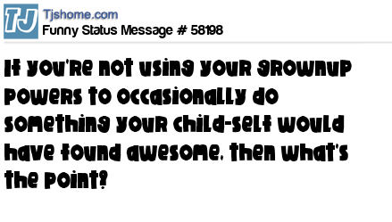 X If you're not using your grownup powers to occasionally do something your child-self would have found awesome, then what's the point?