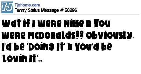 X is Wat if I were Nike n You were McDonalds?? Obviously, I'd be 'Doing It' n You'd be 'Lovin It'..