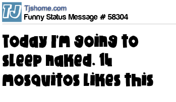 X is Today I'm going to sleep naked. 14 mosquitos likes this