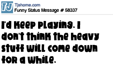 X says I'd keep playing. I don't think the heavy stuff will come down for a while.