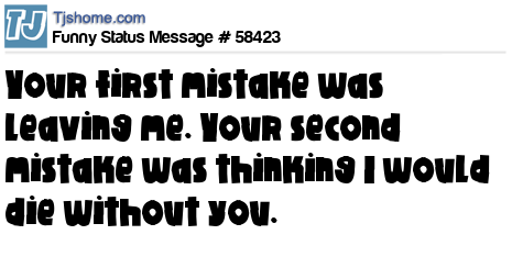 X is Your first mistake was leaving me. Your second mistake was thinking I would die without you.
