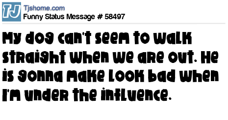 X is My dog can't seem to walk straight when we are out. He is gonna make look bad when I'm under the influence.