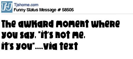 X says The awkard moment where you say, "it's not me, it's you"....via text