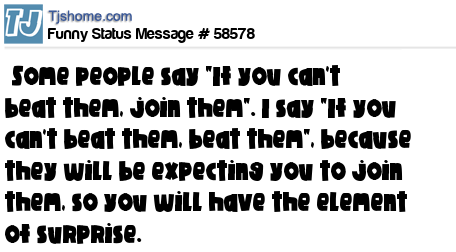 - # 166292 Some people say "If you can't beat them, join them". I say "If you can't beat them, beat them", because they will be expecting you to join them, so you will have the element of surprise.
